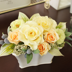 他店にはない素敵な色のお花で、落ち着いたクラシックな雰囲気のアレンジメントに大変満足しております。また包装もしっかりされており、今後もプレゼントで利用させて頂ければと思います。